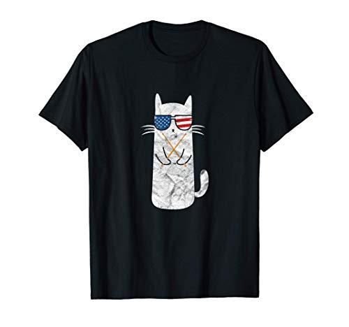 Drummer Cat Sunglasses USA Flag Funny Patriotic American T-Shirt