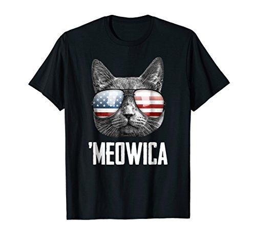Meowica Funny Cat American Flag Sunglasses July 4th T-Shirt