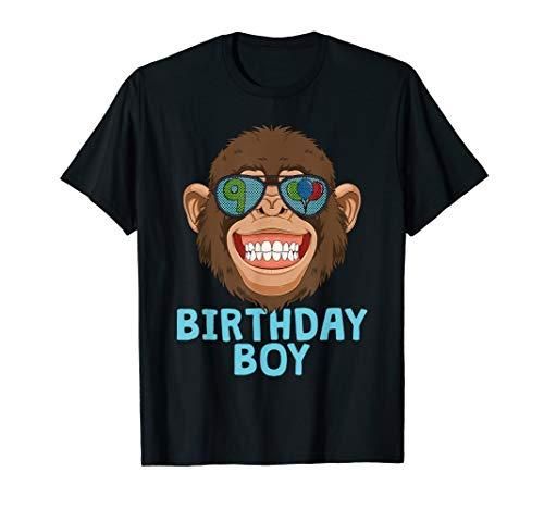 Monkey Birthday Boy 9 Balloon Sunglasses 9th Birthday Party T-Shirt
