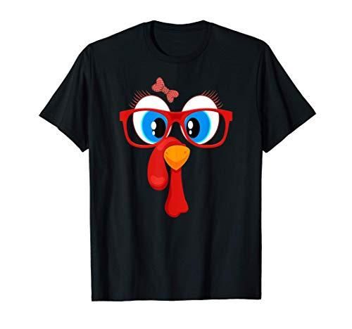 Funny Thanksgiving Turkey Girl Face Sunglasses Blue Eyes T-Shirt