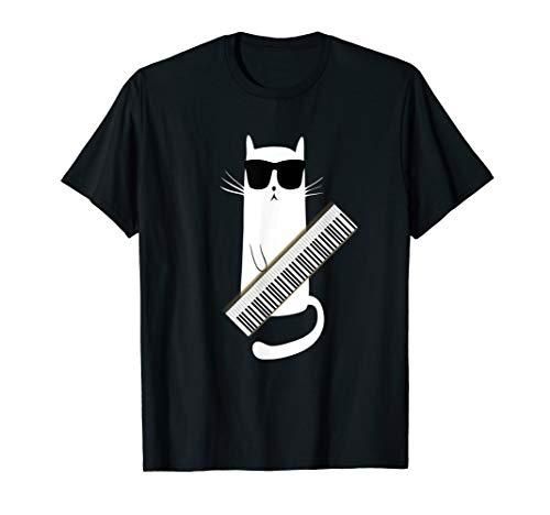 Cat Wearing Sunglasses Playing Keytar- Guitar Keyboard Shirt
