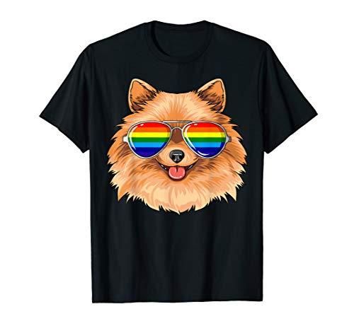 Pomeranian Gay Pride Flag LGBT Rainbow Sunglasses Pomeranian T-Shirt