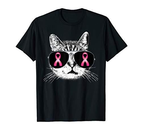 Breast Cancer Awareness Pink Ribbon Cat Sunglasses Womens T-Shirt
