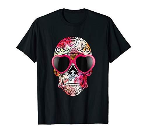 Day Of The Dead TShirts Sugar Skull Pink Heart Sunglasses T-Shirt