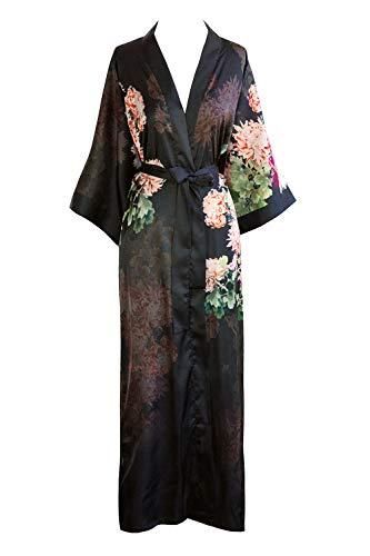 レディース シャルムーズ着物ローブ ロング 水彩花柄 カラー ブラック