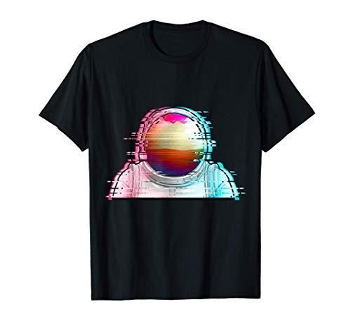 Astronaut Suit & Helmet Glitch Art Retro 80s Synthwave T-Shirt