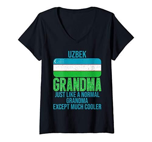 Womens Vintage Uzbek Grandma Uzbekistan Flag for Mother's Day V-Neck T-Shirt