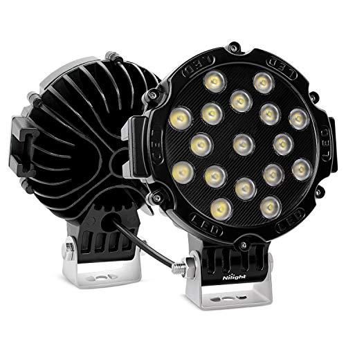 Nilight - 15023FB-B Led Light Bar 2PCS 7 51w 5100LM Black Round Flood Light Pod