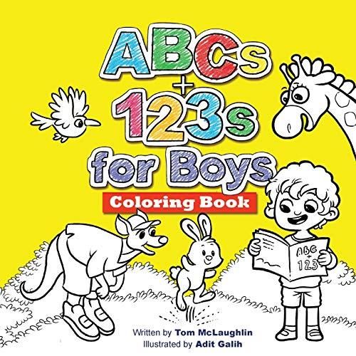 ABCs and 123s for Boys Coloring Book Jumbo pictures. Hours of fun animals scenes