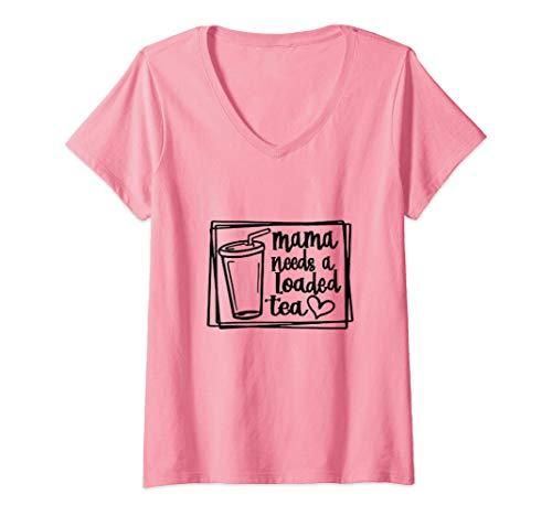 Womens Mama Needs a Loaded Tea Fitness Nutrition Gym Workout V-Neck T-Shirt
