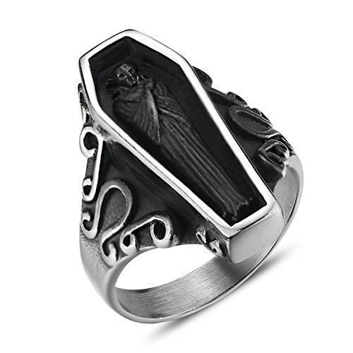 jajafookジュエリーヴィンテージPortrait Vampire Coffin Ring forメンズチタンスチールリング