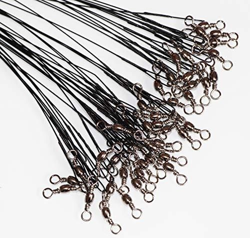 60ピース フィッシングワイヤーリーダー ナイロンコーティング 釣り糸ワイヤーリーダー スイベルとスナップ付き 6インチ 9インチ 12インチ ブラック 60本