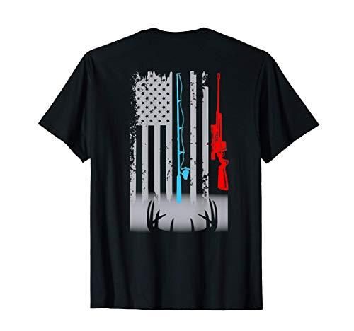 Fishing Rod Shotgun Deer Flag on back T-Shirt