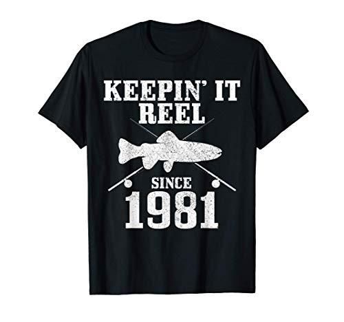 Mens Keepin It Reel Since 1981 Funny 40th Birthday Gift Fishing T-Shirt