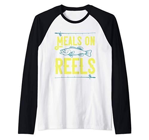 Meals on Reels Funny Fishing Raglan Baseball Tee