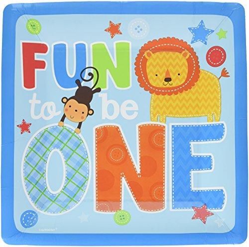 Amscan One Wild Boy Square DinnerペーパープレートテーブルウェアパーティーSupplies 96ピース、マルチカラー、10イン