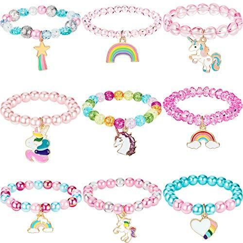 Hicarer 9ピース カラフル ユニコーンブレスレット ガールズ ユニコーンブレスレット レインボーユニコーンビーズブレスレット 誕生日パーティーの記念品