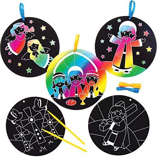 Baker Ross AT561 Holy Week Scratch Art Decorations - Pack of 8 Christmas Tree Or