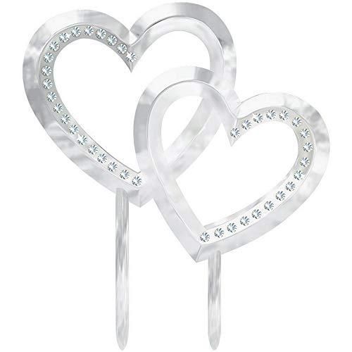 Elegant Electroplated Double Heart With Gems Wedding Cake Topper Party Supply