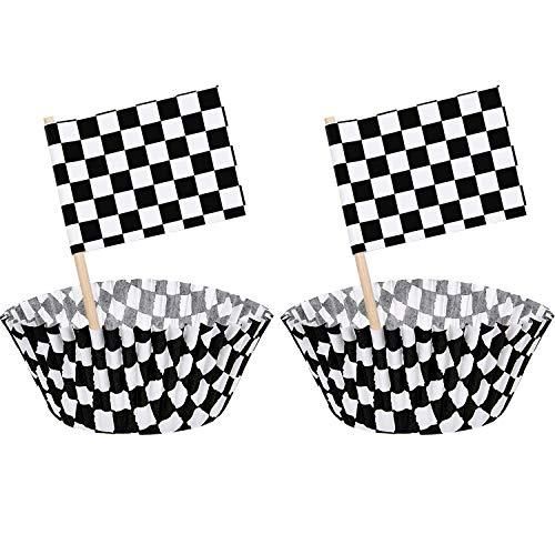 レースフラッグ カップケーキラッパー ペーパーベーキングカップカバー ケーキデコレーション用 ブラックとホワイト