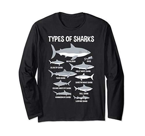 9 Types Of Sharks Educational Ocean T-Shirt Kids Boys Gift Long Sleeve T-Shirt