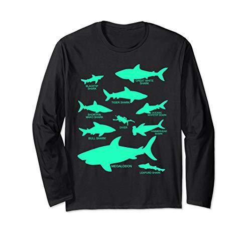Types of Sharks Marine Biology Megalodon Great White Long Sleeve T-Shirt