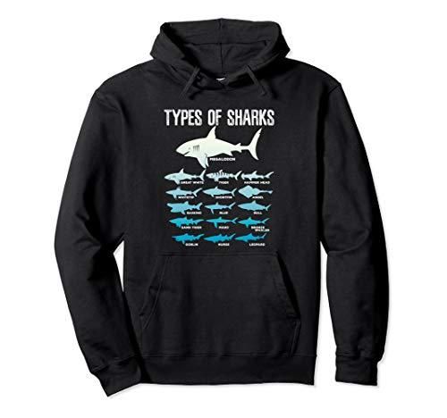Types Of Sharks Marine Biologist 16 Shark Lovers Gift Pullover Hoodie