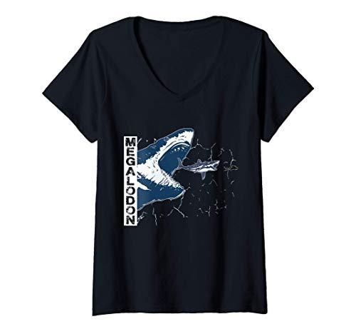 Womens Megalodon Great White Shark Giant Shark Shark Lover Diver V-Neck T-Shirt