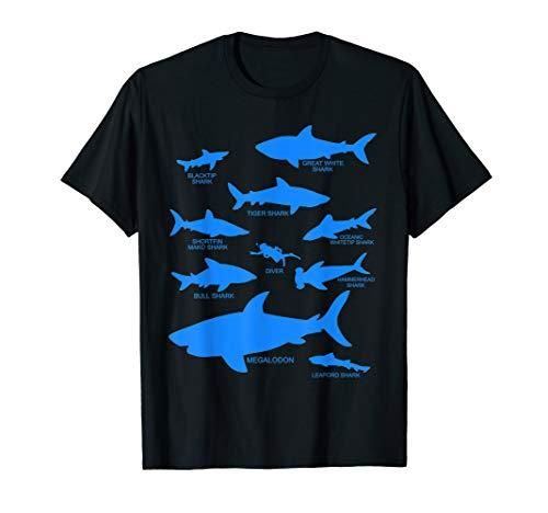 Types of Sharks Marine Biology Megalodon Great White T-Shirt