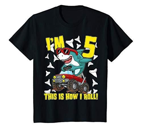 Kids 5 Years Old 5th Birthday Monster Truck Dinosaur Shark Gifts T-Shirt
