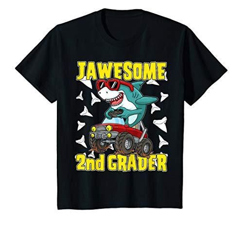 Kids 2nd Grade Monster Truck Dinosaur Megalodon Shark Gaming T-Shirt