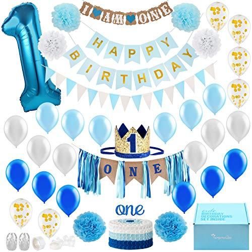 ベビーボーイ 1歳の誕生日デコレーション 誕生日の冠付き - 最初の誕生日の男の子のデコレーション - ケーキスマッシュパーティー用品 - Happy Birt