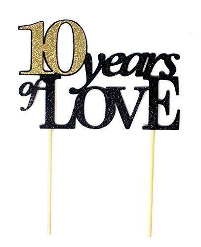 All About Details 10Years of Love ケーキトッパー、1個、10周年記念、センターピース、写真小道具、グリッタートッパー CAT1