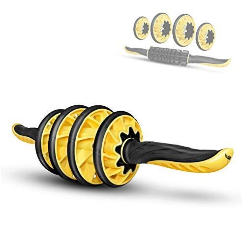 Yes4All 多機能腹筋ローラー/筋肉ローラースティック 腹筋ワークアウト器具 取り外し可能なアブホイール付き マッサージスティック変形用 イエロー/ブラック