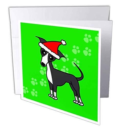 Janna Salak Designs犬??かわいいグレーブルーItalian Greyhoundグリーンwith Santa Hat??グリーティングカード