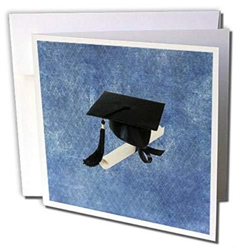 ビバリーターナー卒業式デザイン??ブラック卒業キャップと卒業証書onブルーデザイン??Greeting cards-12グリーティングカード封筒付きGC _ 1