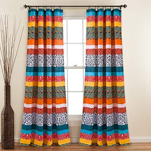 Lush Decor ターコイズとタンジェリン ボーホー ストライプ ウィンドウカーテン ボヘミアンデザインパネルペア 幅52インチ×長さ84インチ