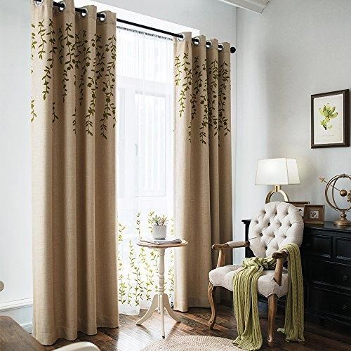 Melodieux リネンカーテン 小麦の刺繍 W100 x L84 ベージュ NCCX-BI-D