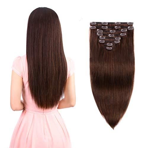 Real Clip in Hair Extensions Medium Brown 8 Pieces - Premium Womens Straight Dou
