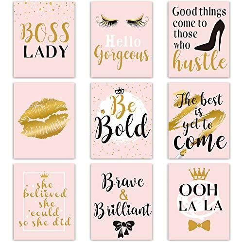 インスピレーショナルな壁装飾 ティーンの女の子向け寝室装飾 ピンクのメイクのラッシュ 唇 壁アートポスター 女性向けモチベーションプリント 浴室 ホーム装飾 8