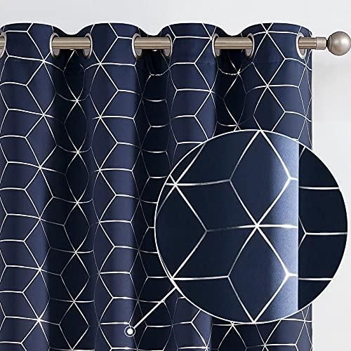 Vangao 部屋を暗くするカーテン リビングルーム用 窓周り装飾 遮光ドレープ 寝室用 グロメットトップ 断熱 窓周り装飾 84LPair ブルー VGBLK