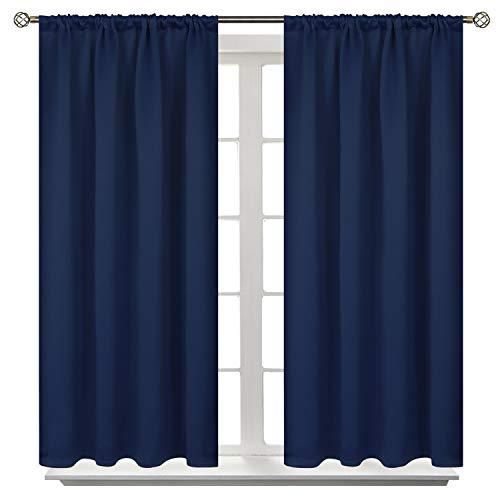 BGment ロッドポケット 寝室用遮光カーテン 断熱ルームダークニングカーテン リビングルーム用 42 x 45インチ 2パネル ネイビーブルー