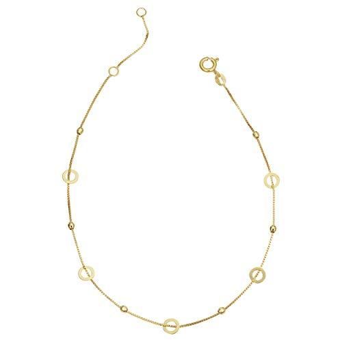 Kooljewelry 14Kイエローゴールド サークルとビーズステーション 長さ調節可能 アンクレット 9または10インチに調整可能