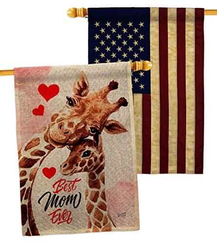 Mommy Giraffe Burlap House Flag - Pack Family Mother's Day Mom Mama Grandma Love
