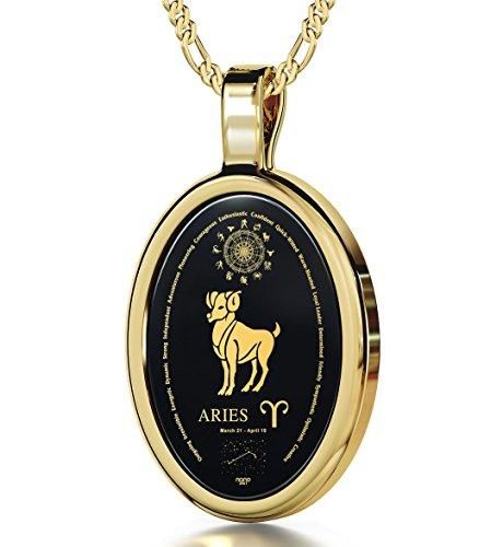 星座ペンダント牡羊座ネックレス内接24?Kゴールドonオニキスストーン、18???NanoStyleジュエリー
