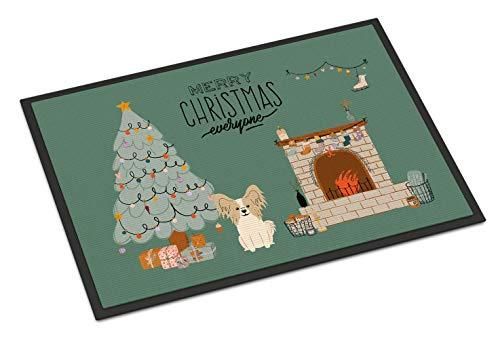 Caroline's Treasures セーブル ホワイト パピヨン クリスマス 皆さま 屋内または屋外マット 24x36 ドアマット マルチカラー