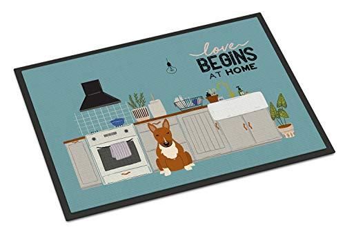 Caroline's Treasures レッドブルテリア キッチンシーン 屋内/屋外マット 24x36インチ ドアマット マルチカラー