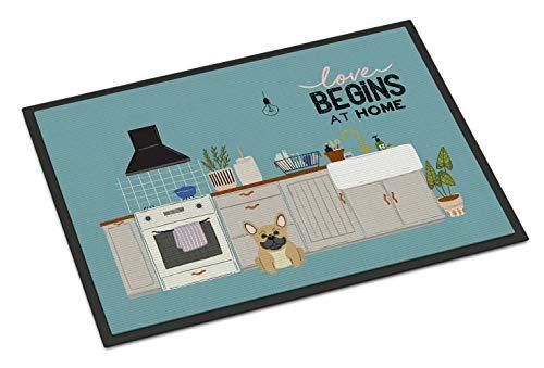 Caroline's Treasures クリームフレンチブルドッグ キッチンシーン 屋内/屋外マット 24x36インチ ドアマット マルチカラー