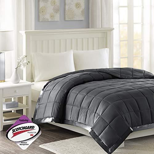 マディソンパークウィンダムマイクロファイバーダウン代替耐汚染毛布、キング、チャコール
