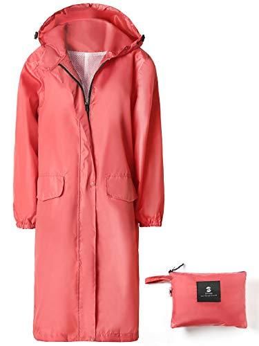 レディース ロング フード付き レインジャケット 防水 軽量 レインコート ウィンドブレーカー ピンク L